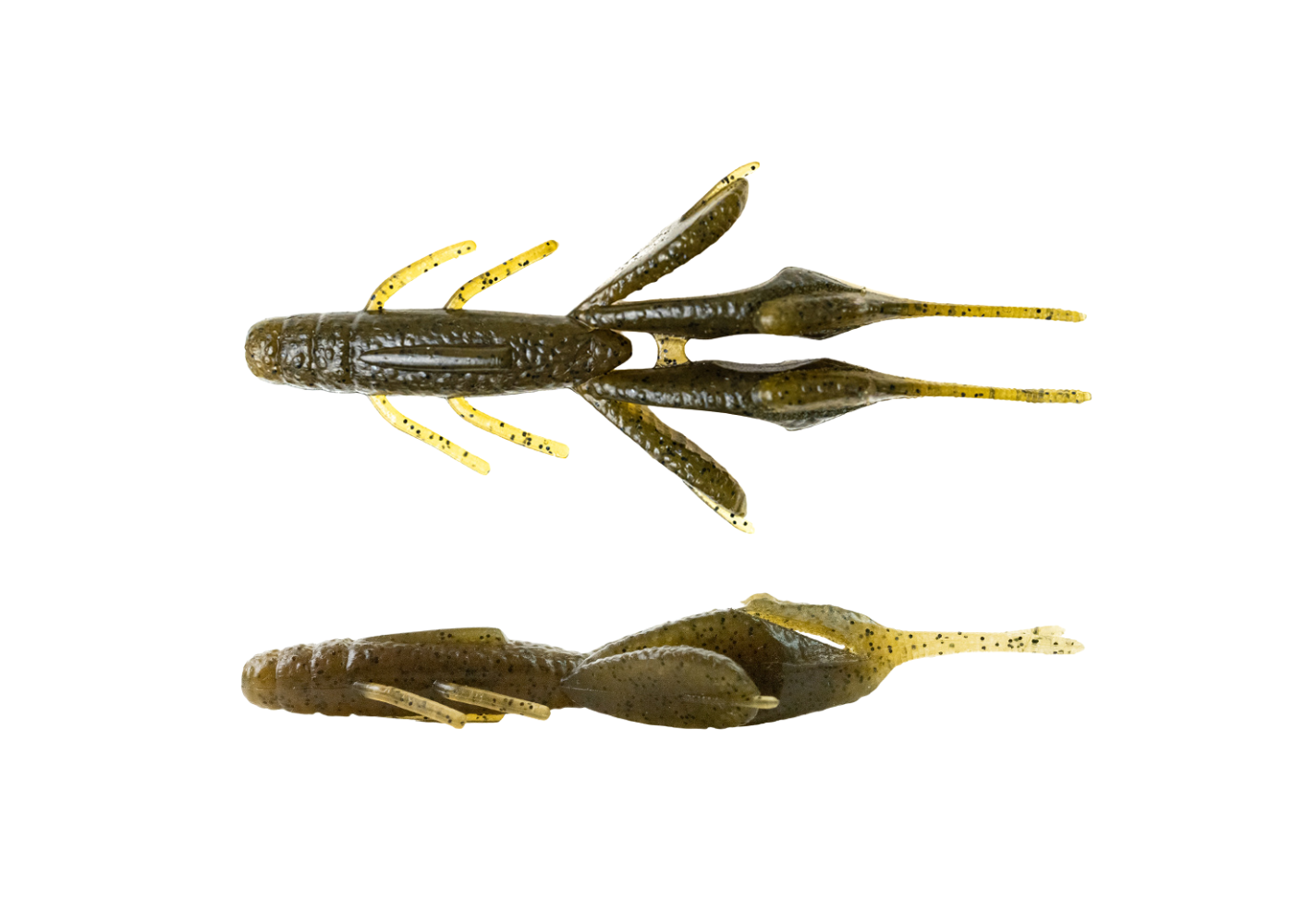 Bien que sa taille de 3 pouces soit modeste, cette craw hybride se démarque par sa capacité à brasser un volume d'eau impressionnant. Ses larges appendices plats asymétriques se mettent en mouvement à la moindre sollicitation, produisant un puissant kicking. De plus, son corps annelé retient idéalement vos attractants en gel ou en pâte, tout en libérant de subtiles bulles d'air à la descente, un détail qui trompe régulièrement la vigilance des carnassiers.